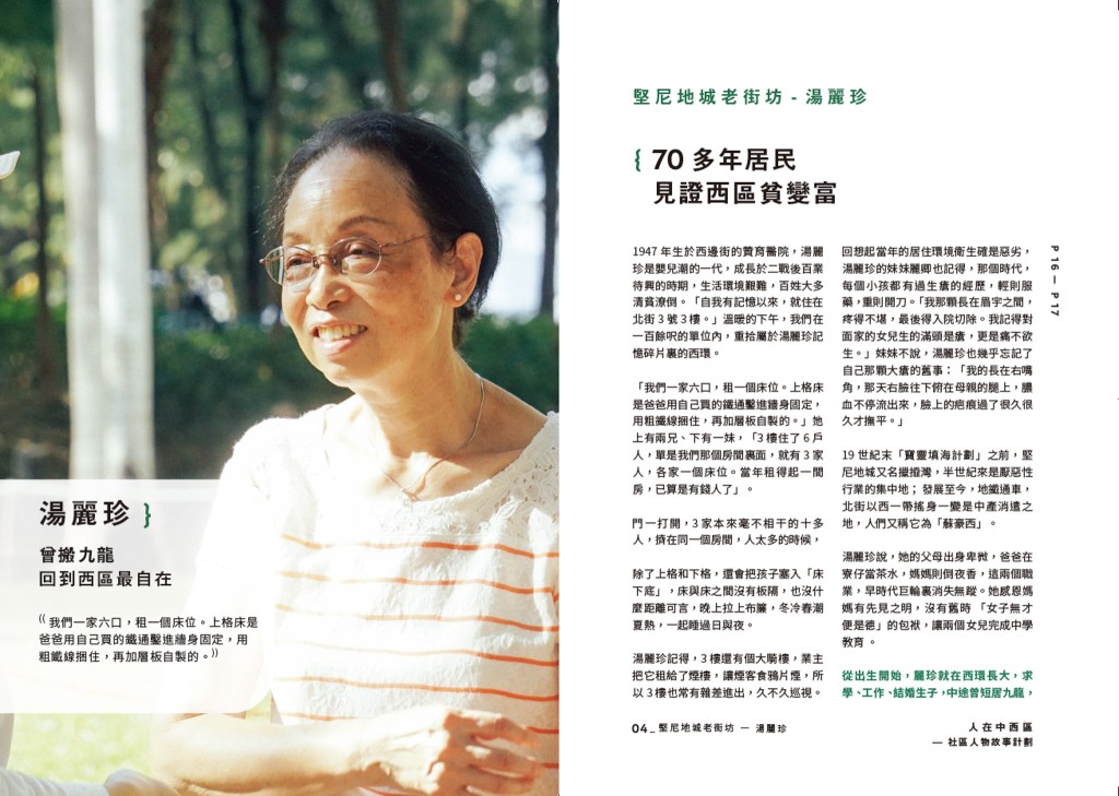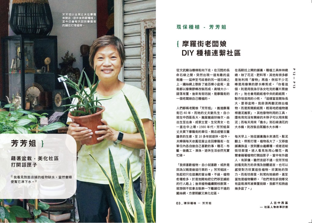 「人在中西區」由獅子頭文化工作室與中西區區議會協作,在八個月內共記錄了十個中西區故事,2021年集結成書及網頁,印刷共3000本,免費派予公眾。